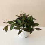 Ahoy, plant enthusiasts, introducing Hoya ‘Adrift!’ This unusual hybrid hoya features trailing stems of elongated green leaves that are edged in maroon. ‘Adrift’ prefers medium to bright, indirect light. It can tolerate some morning or late afternoon sun exposure, especially if you would like it to blush some bronzey-red tones for you, however, be wary of placing it in full day sunlight, or it may get a sunburn. Like other hoyas, ‘Adrift’ prefers to dry out in between waterings. On the rare occasion that it blooms, it will send out umbels of red, waxy flower clusters. Avoid removing spent flower spurs, as ‘Adrift’ is capable of reblooming on old peduncles.