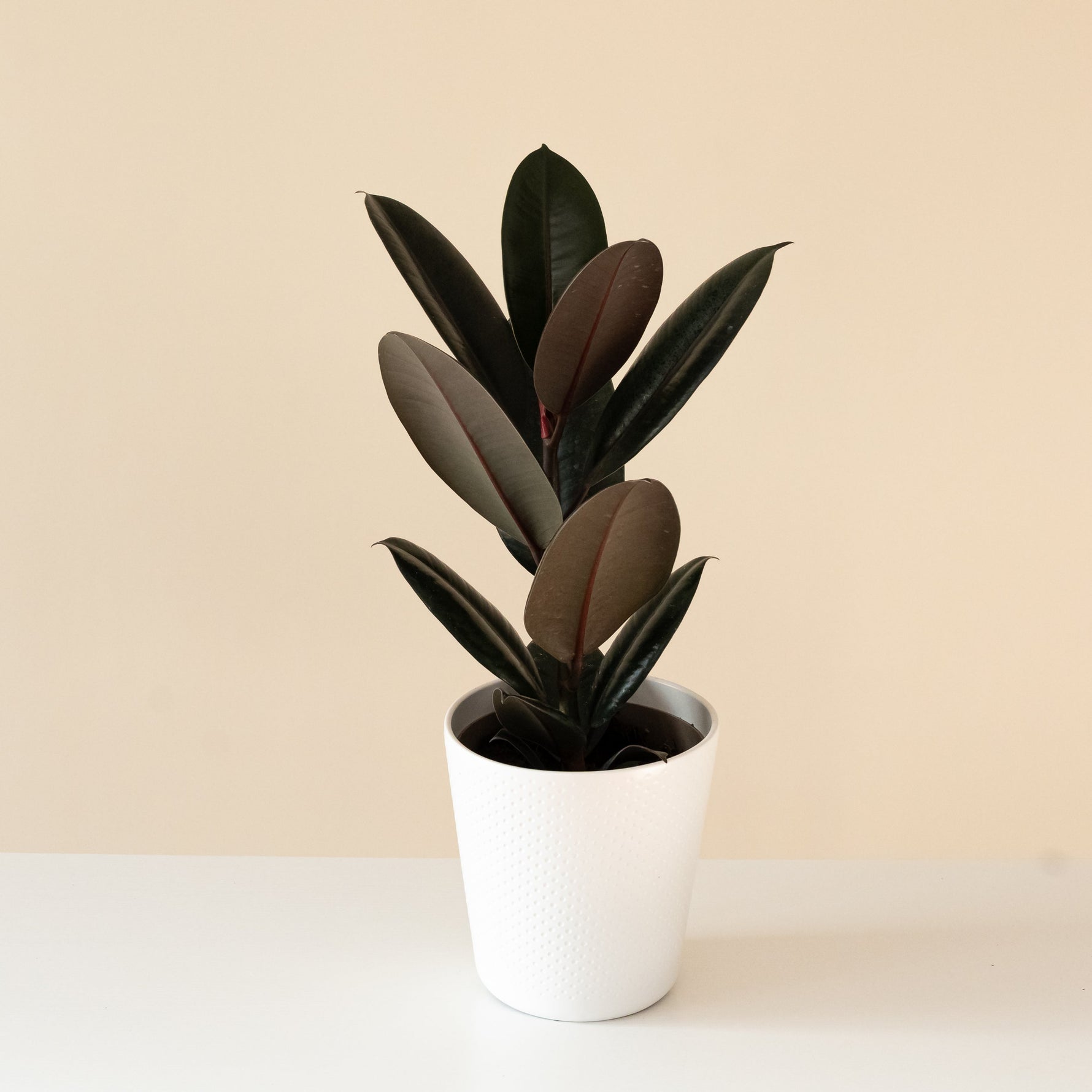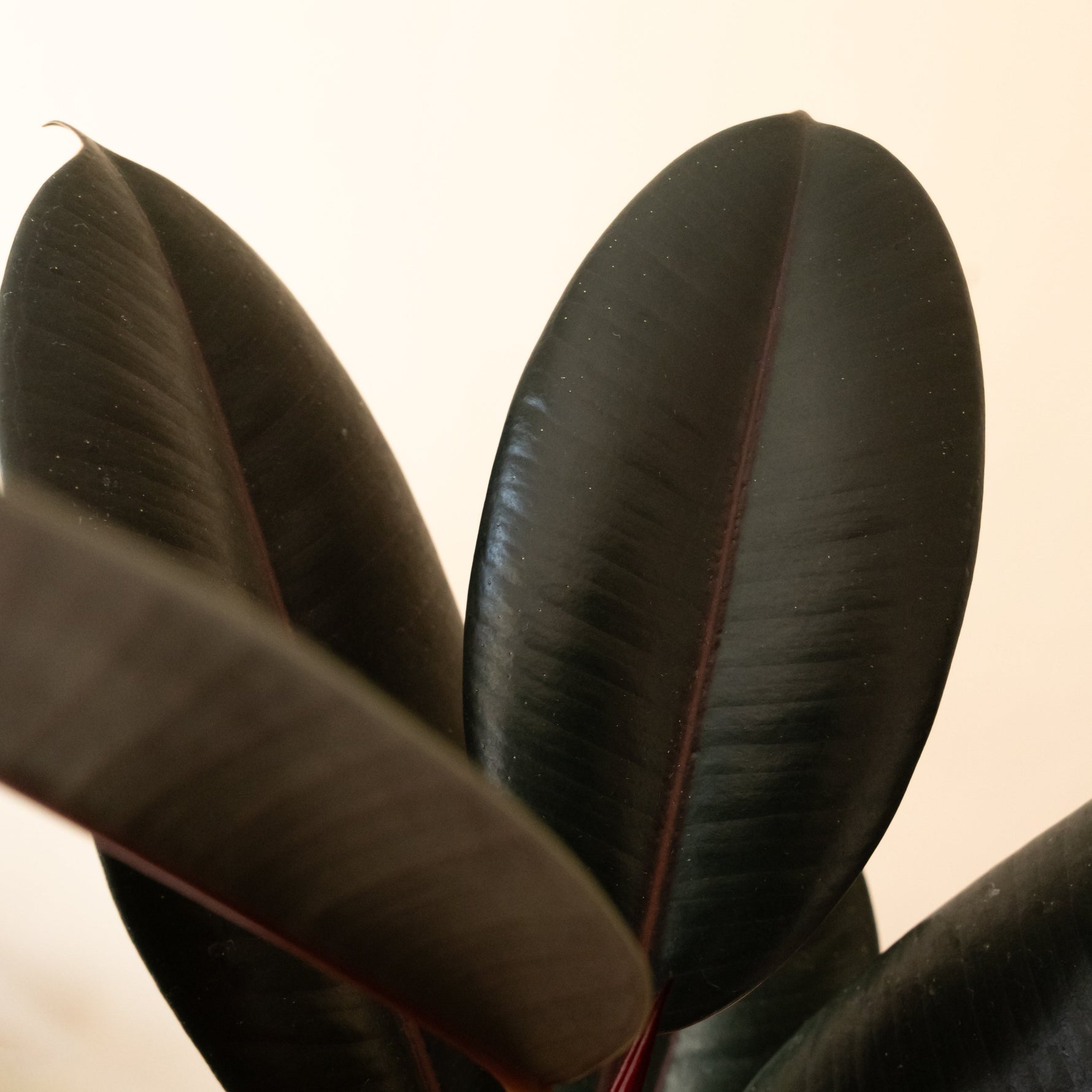 Introducing Chroma ‘Abidjan’, named after the vibrant city on the Ivory Coast. This Rubber Plant has sleek, ovate-shaped leaves that are so dark green, they are almost ebony. Leaves contrast with the protective red sheaths on emerging growth; midribs also display hints of red. A little leaf shine will keep your ‘Abidjan’ as striking and sophisticated as its namesake city.