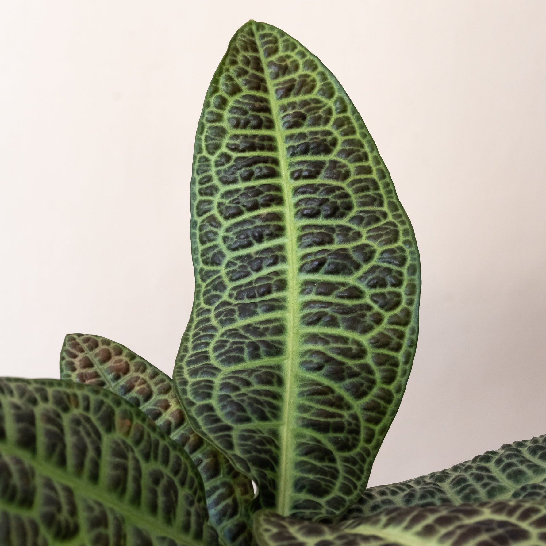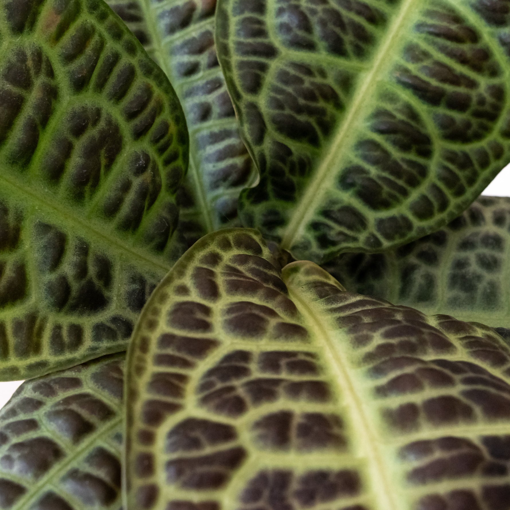 Named after the Malay word for “tortoise” or the Indonesian word for “turtle” is a unique tropical plant known as ‘Kura Kura’ Labisia. This rare, eye catching specimen has elliptical-shaped, glossy leaves adorned with the patterns and textures of a turtle’s shell. Though an often slow grower, ‘Kura Kura’ will thrive in a warm, high-humidity environment, making it especially well-suited for life under glass.